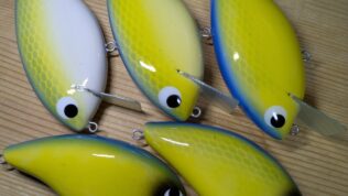 つい先日年が明けたと思ったらもう2月。1年の12分の1があっという間に過ぎてしまった。最近は、溜まりに溜まっていたフラットサイドクランクベイトのブランクを塗装~仕上げ作業を行なっていました。リップの位置を普段よりも下部へ配置し、ウェイトは敢えて固定せずコトコト音が発生するようにしてみた個体。ブラウン...