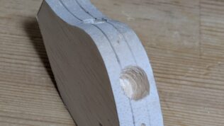 これまでに作ってきたフラットサイドクランクの、形状やウェイト設定の見直しを図っています。画像中央にある、穴が3つ空いているものがこれまでのもののテンプレート。そしてその下に置いてあるものが新形状テンプレートの試作品です。全体的なフォルムはそのままに、丸みを帯びた鼻先にしてベリーフックヒートンの位置も...