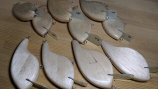 魚釣り 10個のFSクランクが完成間近 全てにリップ、アイを取り付け完了。2液性エポキシ樹脂を用いましたが、綺麗にできた下地を汚さぬよう慎重に作業したためとても疲れました。集中しすぎてヨダレを垂らしちゃったり笑。かかった時間は1時間強といったところ…改善が必要です。アクションの違いを確かめたく、リップ形状は色々な形のものを作りました。塗装... 2025.10.04 他の遊び魚釣り