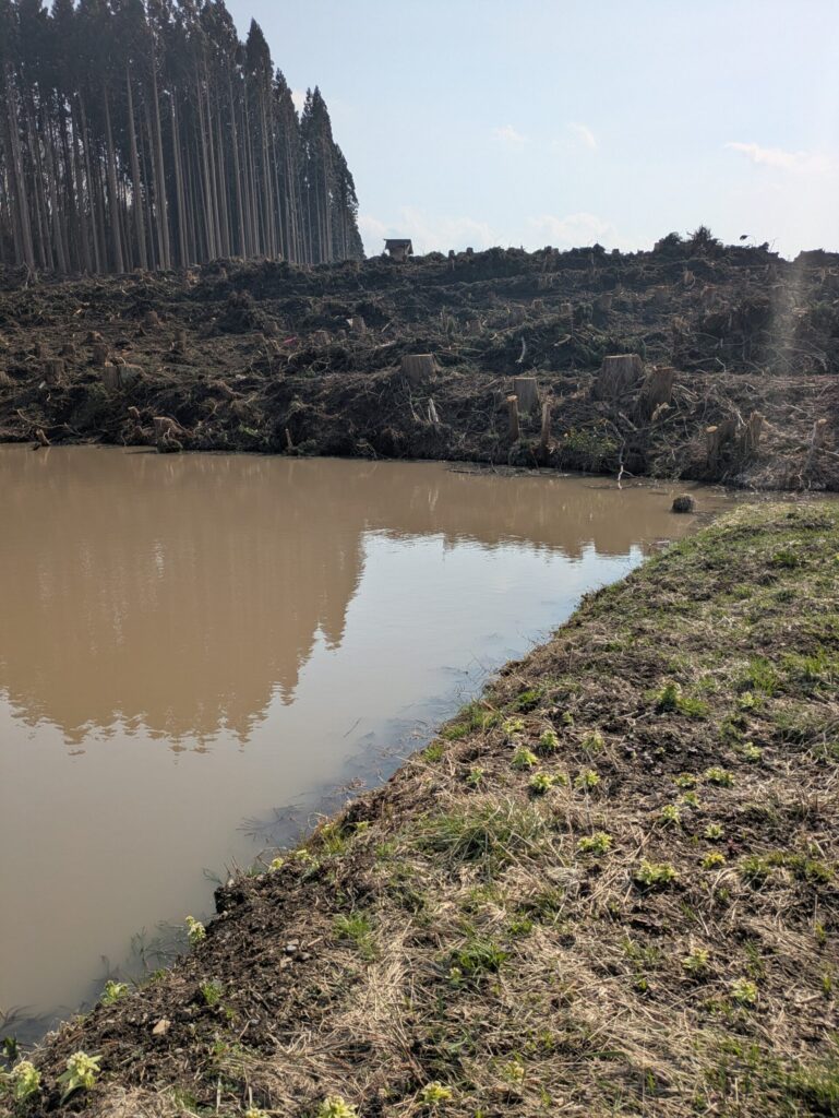 池のほとりまで植樹されていた杉が、杉林が…ごっそりと伐採されていました。