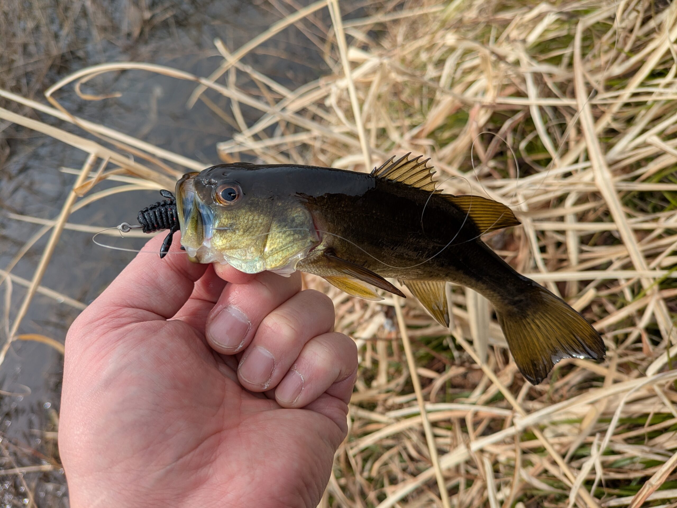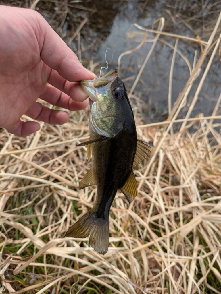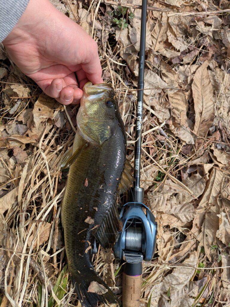今シーズンの一尾目は20cmにも満たない小バスでした。