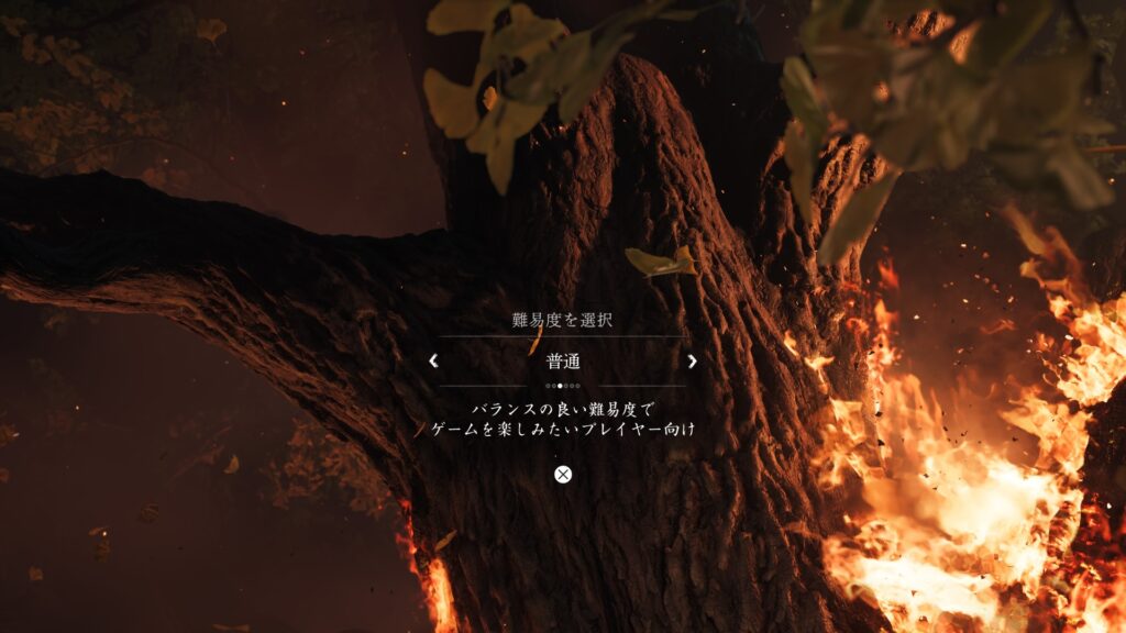 簡単すぎても面白くないし、2週目のハードモードを楽しむためにも難易度は普通で開始。