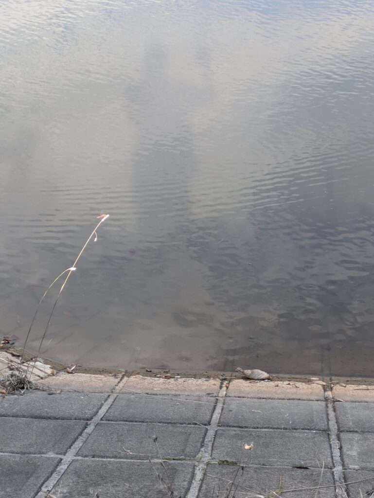 所々腐り落ちており水辺へ近寄りやすいのだが、歩行しやすいエリアに沿う岸はほぼ全てが斜度のキツいコンクリート護岸。