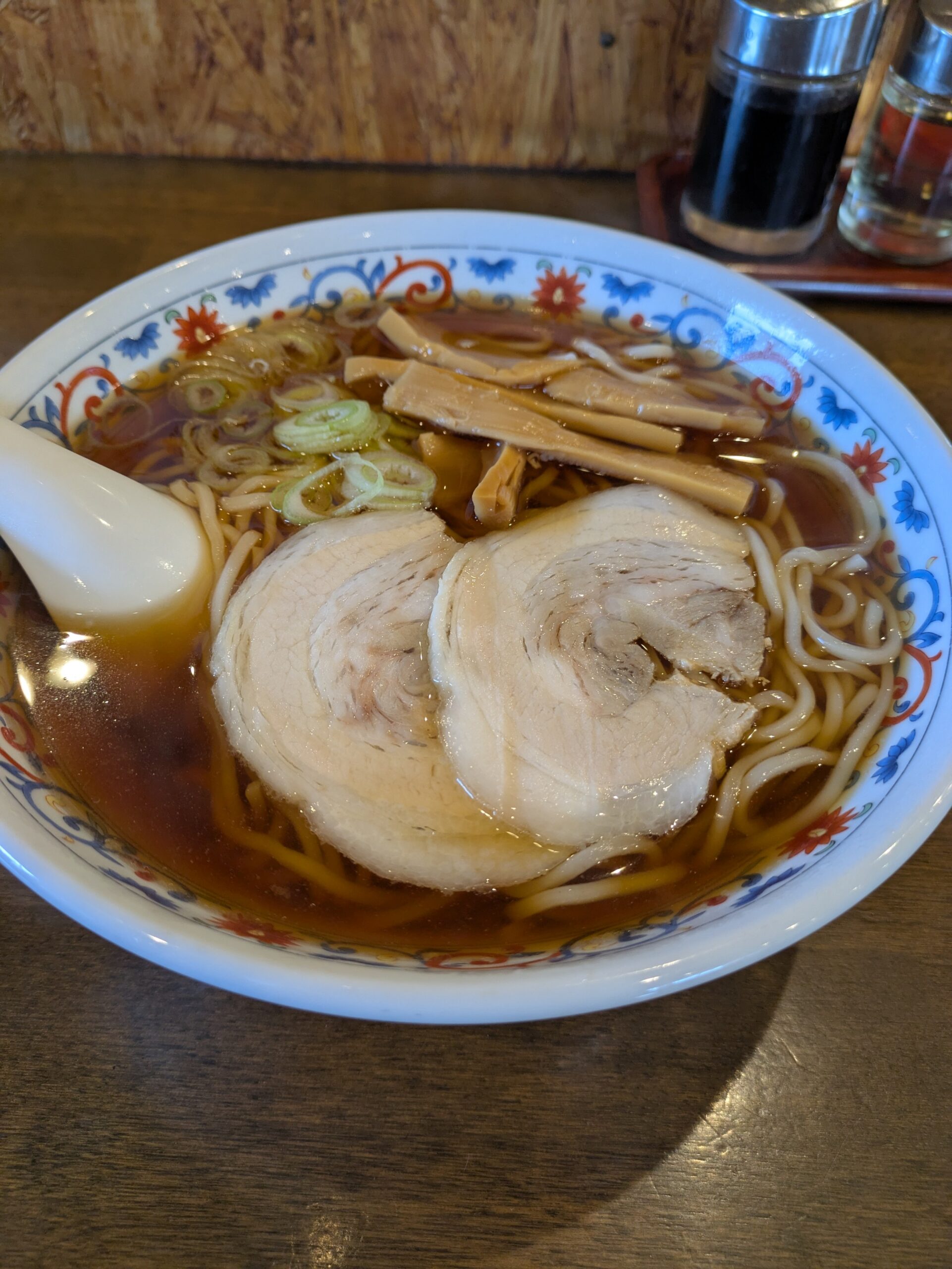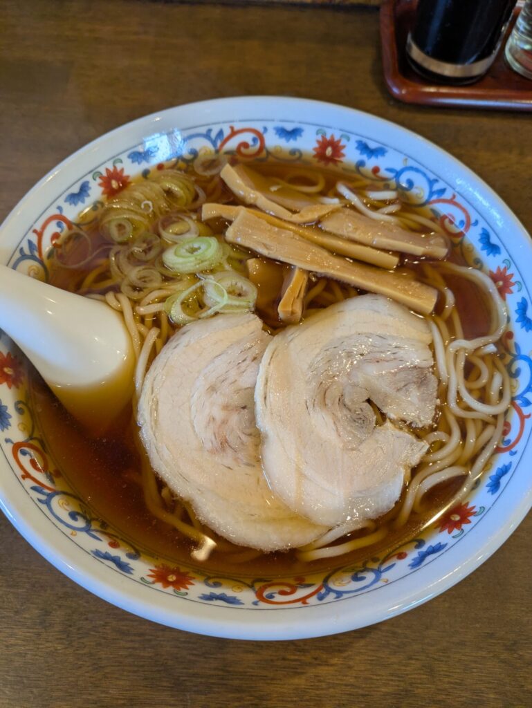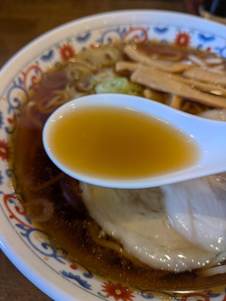 油分少な目の澄んだ醤油スープ。