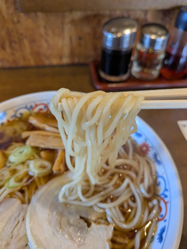 スベスベでコシのある中太ストレート麺。