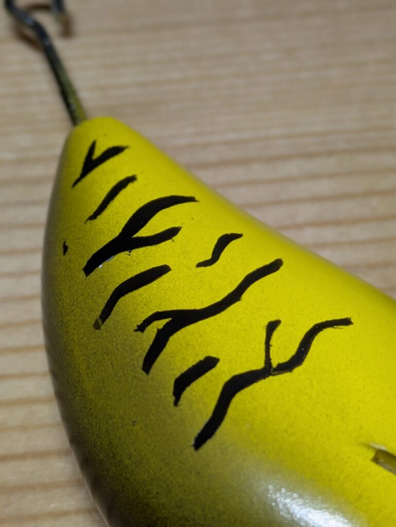 オリエンタルなカラーリングであり永遠の定番色であるタイガー。今年7月にルアー制作を始めて以来、塗りに挑戦してみたかったカラーなのです。