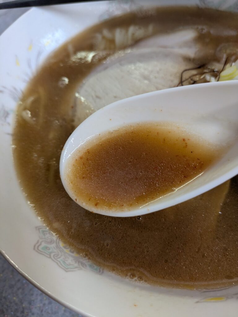 スープを一口、すぐに爽やかで鮮烈な辛味が口内に広がる。お、結構辛いかも…。