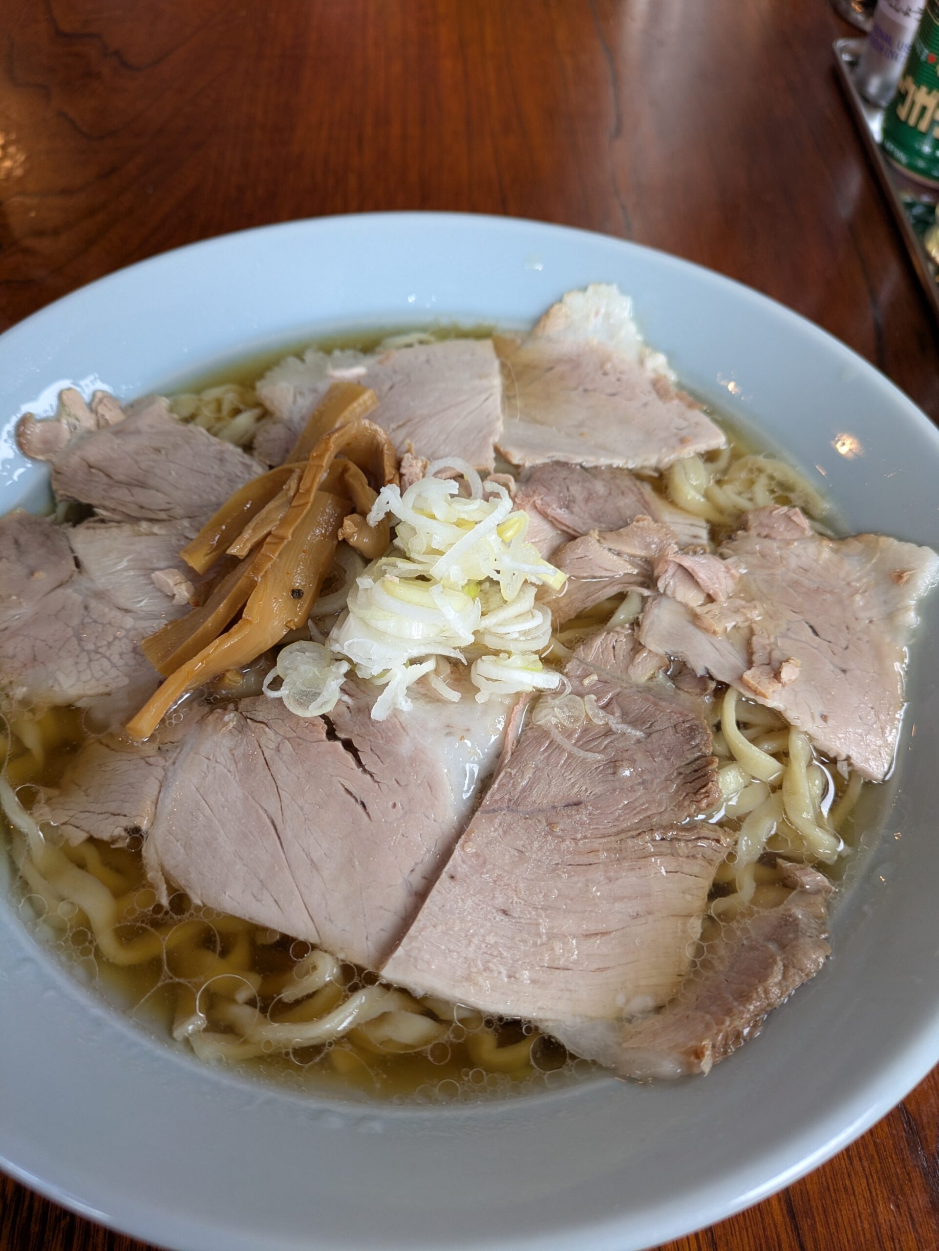 ・醤油味のスープに具はチャーシュー、ネギ、メンマ。