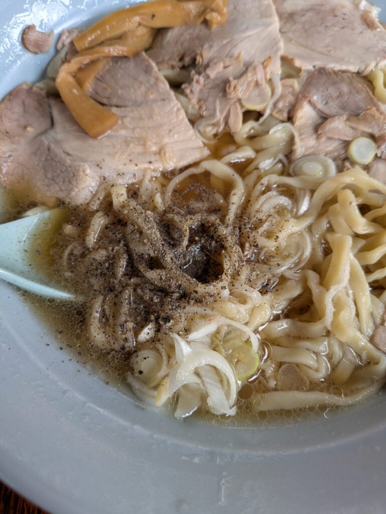 コショウを強めに振っていただきました。このスープに合わない訳も無く…美味い、旨い。
