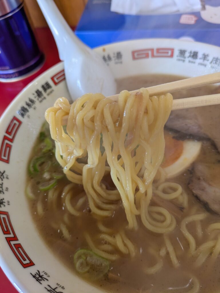 ツルツルプリプリでやや黄色みがかった中華タイプの麺。