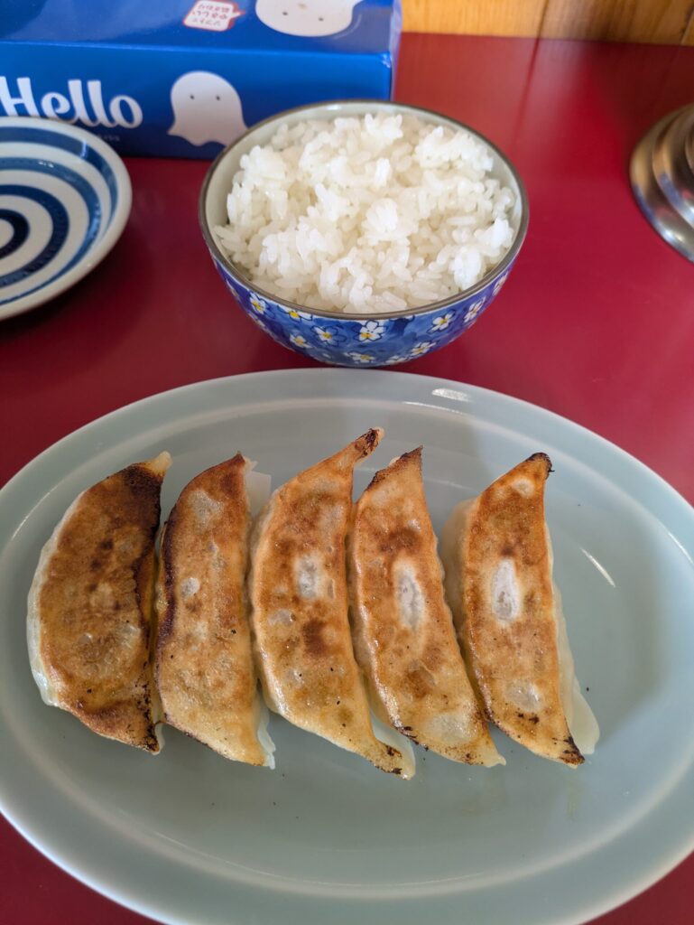 このお店のファンだというのに餃子は未食でしたので、今回は餃子&半ライスで行ってみよう。