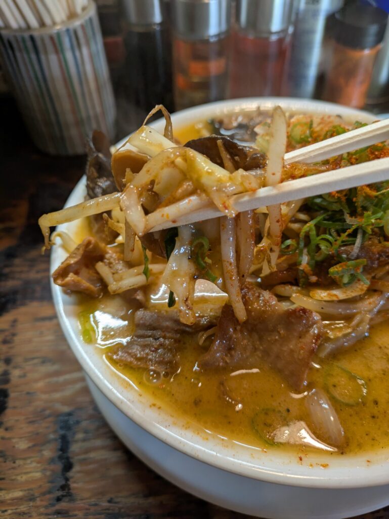 ホルモンの香りに味噌・マー油・ニンニク・野菜のウマミが混ざり合い極上の味わいとなっていました。