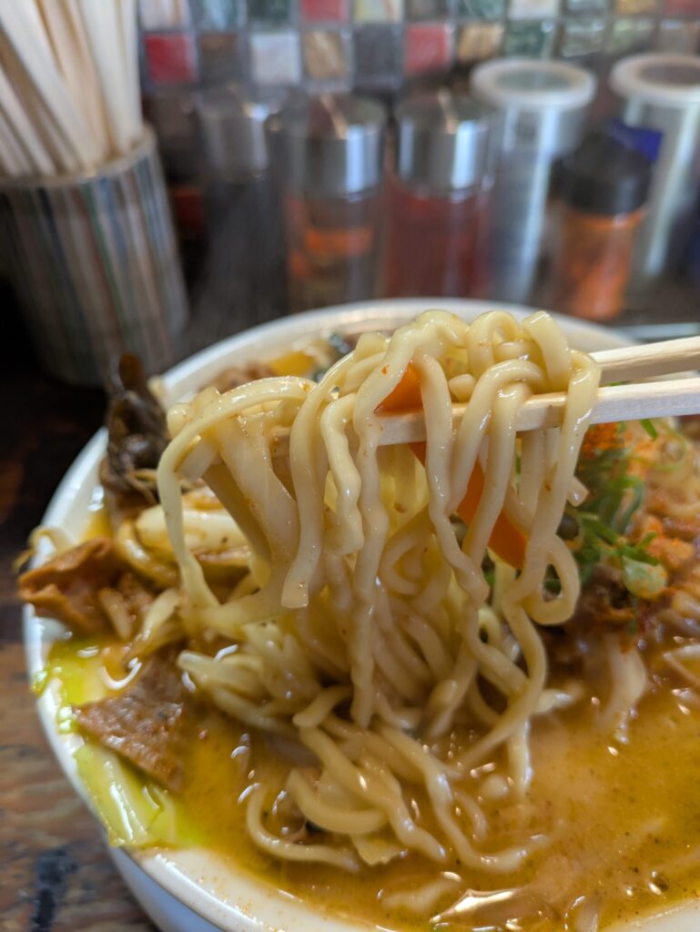 うるとらと言えばこの平打ち麺、単体で非常に美味しい。