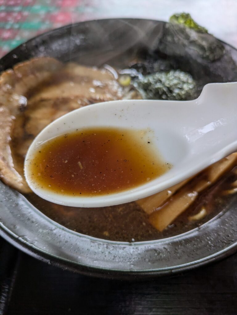 見た目に反して優しい塩分濃度のスープはややビター。