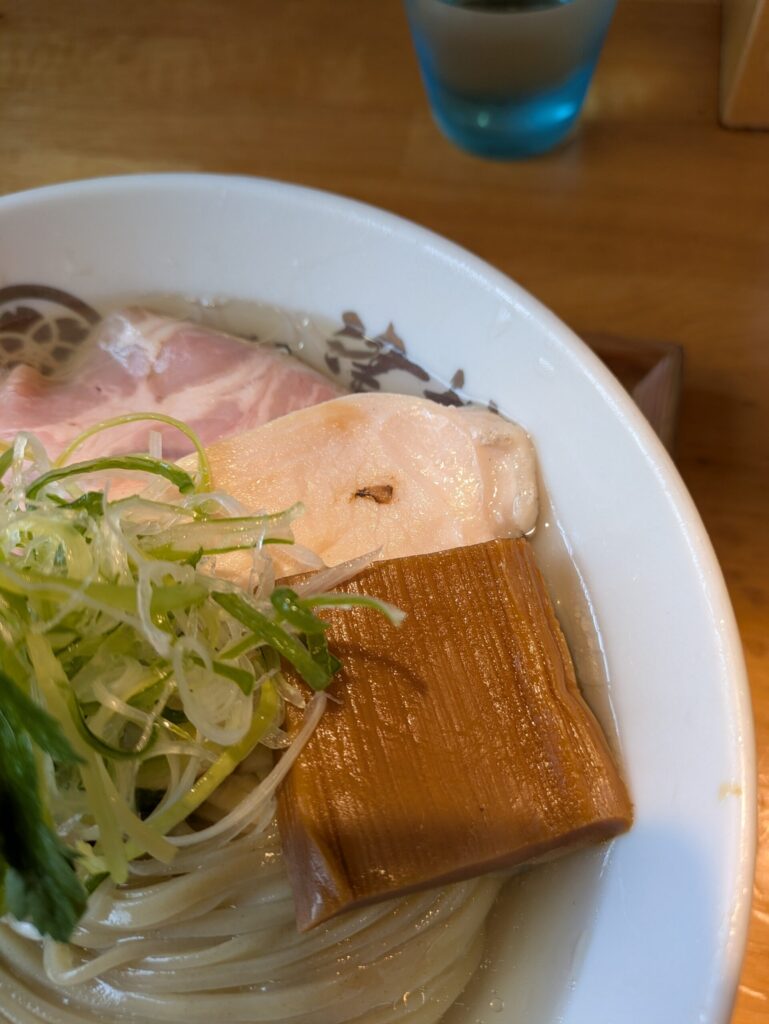 チャーシューは肩ロース?と鶏むね肉?を低温調理されたもの2種がトッピングされています。