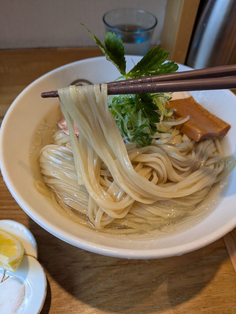 程良い塩味で、主役の麺を邪魔することなく、かつこの洗練されたメニューに不可欠な存在。
